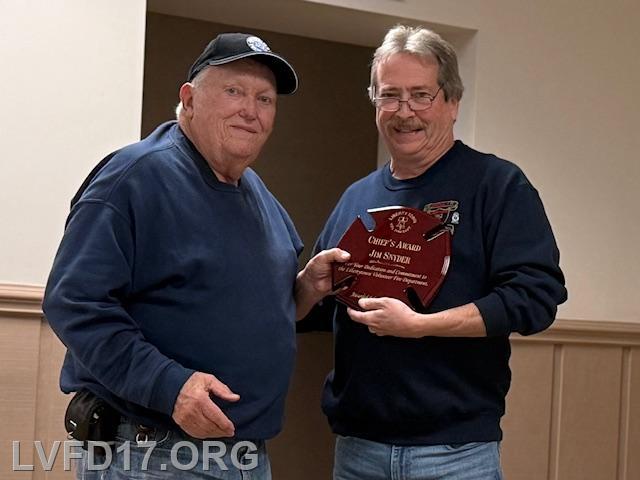 Jim Snyder is presented the "Chief's Award by Chief Dan More' at the annual awards ceremony.