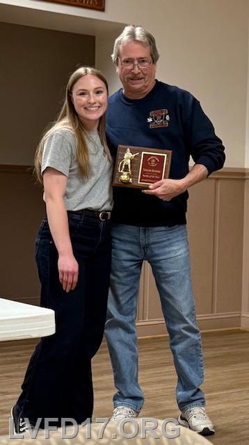 Taylor Burgee is presented the "Rookie of the Year" award by Chief Dan More' at the annual awards ceremony.